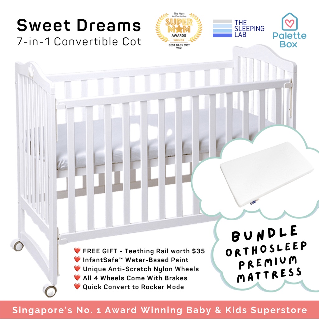 Palette Box Sweet Dreams 7 In 1 Baby Cot With Rocker Drop Gate 120x60cm The Sleeping Lab Orthosleep Premium Mattress Shopee Singapore
